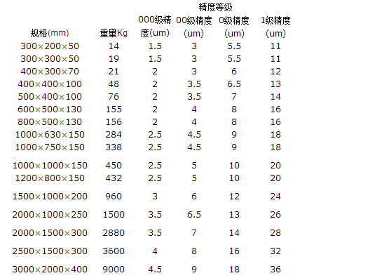 大理石檢驗(yàn)平臺(tái)規(guī)格: