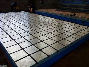 我公司生產的鑄鐵T型槽平臺工作面采用的是刮研工藝,用涂色的方法進行檢驗,保證了平面的精度。工作面一般有T型槽,檢驗平臺也可以根據要求加工長孔和圓孔,這種T型槽平臺采用的是優